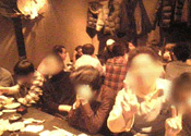 ●大変申し訳ございません。また一次回での写真をとることを忘れてしまってました...。写真は二次会での写真です。クリスマス飲み会自体は大変盛り上がってました。またよかったら遊びにきてくださいね。さて次回は写真撮影を肝に命じてわすれません!! 12月27日『忘年会飲み会』2009年1月17日『新年会飲み会』を開催します。みなさんよかったらご参加くださいね!!